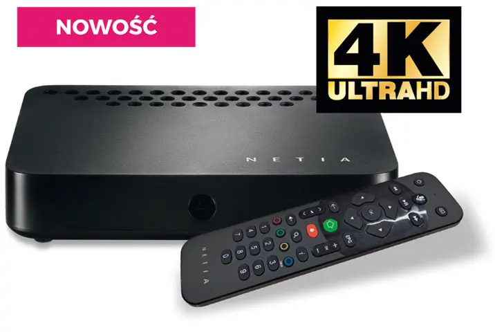 i zamawianie usług PPV - Posiada dostęp do aplikacji Disney+, Netia GO, VOD nagrań oraz tysięcy stacji radiowych